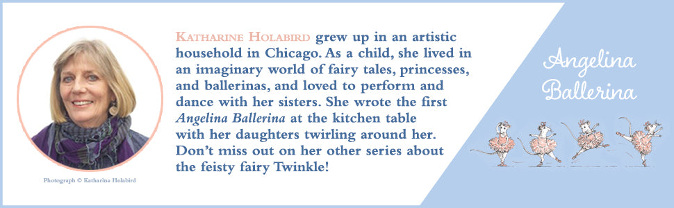 Katharine Holabird grew up in a family of architects and artists in Chicago. As a child, she lived in an imaginary world of fairy tales, princesses, and ballerinas, and loved to perform and dance with her sisters. She wrote the first Angelina Ballerinaat the kitchen table with her daughters twirling around her. Katharine has three grown children and three grandchildren, and now lives in New York City with her husband.