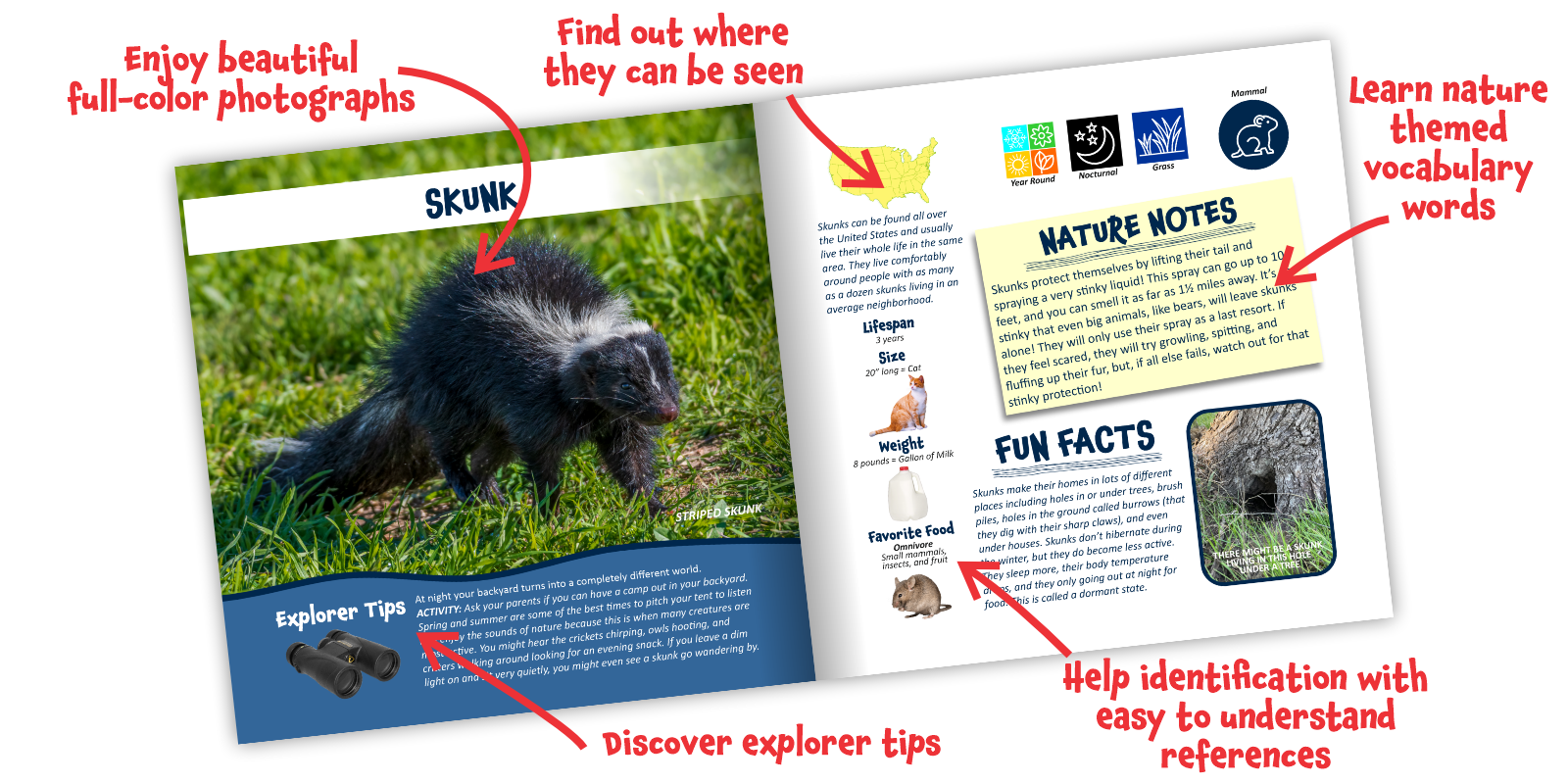 Backyard Critters & Creatures is another great addition to the nature book series, by author and photographer Cheryl Johnson. The book shows that wherever you live, in the city or the countryside, you don't have to travel far to find amazing creatures and animals. With some simple tools, such as a notepad and pen, and binoculars, there is lots to explore right outside the backdoor. The book and the series will spark children's curiosity and encourage a deeper interest in the natural environment. It will hopefully inspire readers of all ages to go outside and explore.