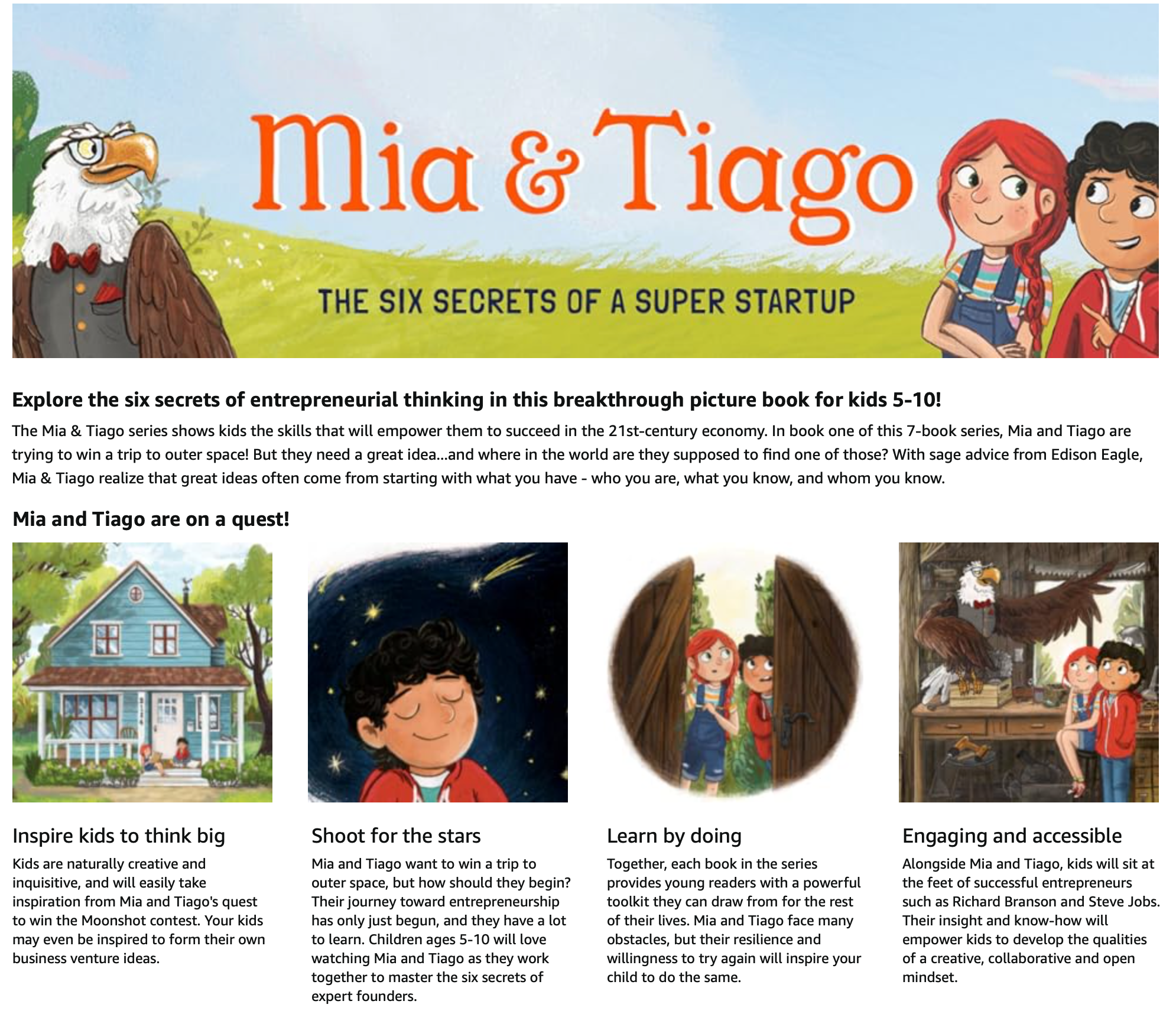 "As an entrepreneur, when I make hiring decisions, I look for people who aren't just smart. I want people who have an entrepreneurial mindset, people who are creative thinkers and problem solvers. The Mia & Tiago picture-book series teaches kids those skills in a fun and engaging way." -Doug Lebda, Founder and CEO of LendingTree
