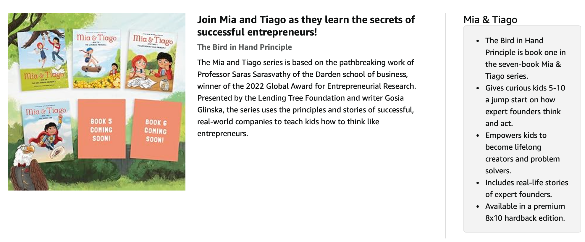 Those beliefs inspired Gosia to write MIA & TIAGO, a picture-book series that introduces young children to a set of principles of entrepreneurial decision-making. The highly-teachable principles, known as effectuation, were scientifically developed by Prof. Saras D. Sarasvathy, a leading scholar on the cognitive basis for high-performance entrepreneurship.