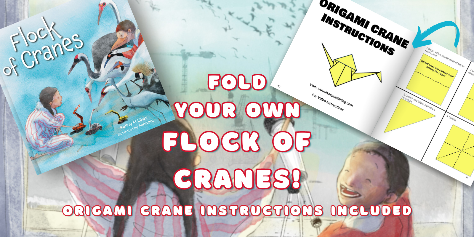 Flock of Cranes is an adorable story of two children using their telescopes to find the different types of cranes there are at the zoo, only to find that they are looking at two different types of cranes. The illustrations found in these pages are gorgeous! When the story shows the different plumages and characteristics of cranes, I was blown away! The colors pop off of the pages. When you compare them to photos of actual cranes they are so similar! I would recommend this to any child interested in animals, or construction. I would recommend this to any child who loves to learn about different birds! And I would recommend this to anyone looking for a little giggle. At the end of the story, the book provides a few facts about cranes that I found to be very interesting. There are also instructions found to fold your own origami paper crane! They were very easy to follow! I loved reading this and hope you will too. It is a cute storyline that made me smile and giggle. It would be a vey easy misunderstanding for curious children to make. I loved this. Thank you, Kelley Likes and Ninnani sharing your words and art with the world. It was incredible. I would love to see more in the future.