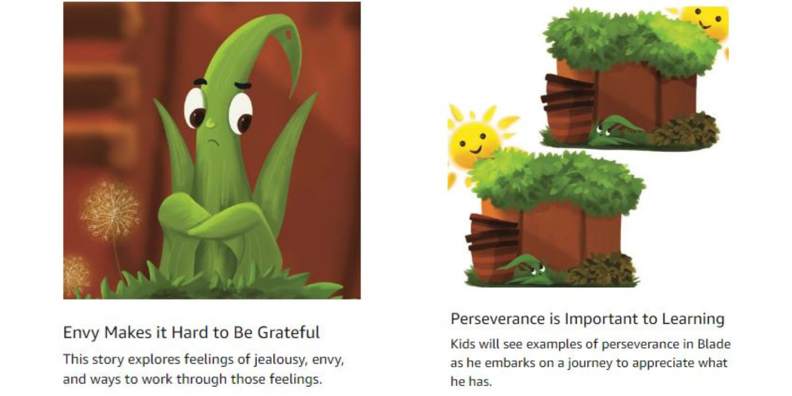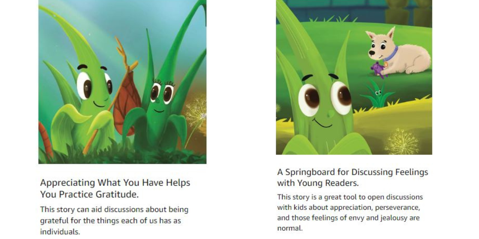 "Green With Envy by Terri Sabol is an appealing story that tackles the subject of jealousy in a delightful way using two charming characters, Blade and Augustine. Pei Jen's illustrations are as adorable as the characters and the story and not only give clarity to the concept but also make it enjoyable to young readers. Blade's character is realistic and many readers will be able to relate to it. Very often children think someone else is better than them and this story is a good way to make them appreciate and be happy with what they have. It is a good book for storytelling sessions at homes and in classrooms to teach children to be happy with what they have instead of looking at others and feeling jealous."