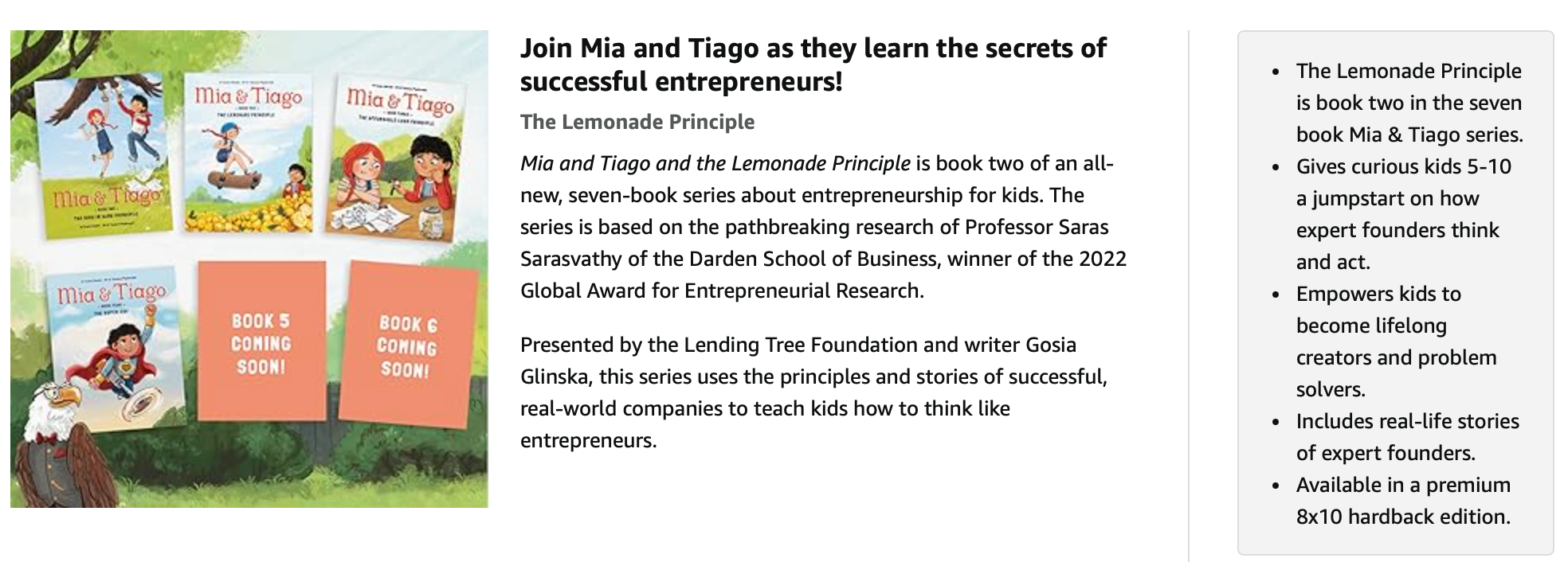 "As an entrepreneur, when I make hiring decisions, I look for people who aren't just smart. I want people who have an entrepreneurial mindset, people who are creative thinkers and problem solvers. The Mia & Tiago picture-book series teaches kids those skills in a fun and engaging way." -Doug Lebda, Founder and CEO of LendingTree