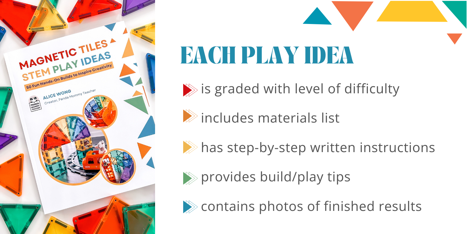 Alice Wong is a panda-loving mom of 2. She is the creator of Panda Mommy Teacher who has captured the hearts of over 425,000 followers worldwide with her creative play ideas and accessible magnetic tile build tutorials. She has collaborated with some of the world’s most recognized magnetic tile brands, including Connetix Tiles and Magna-Tiles.