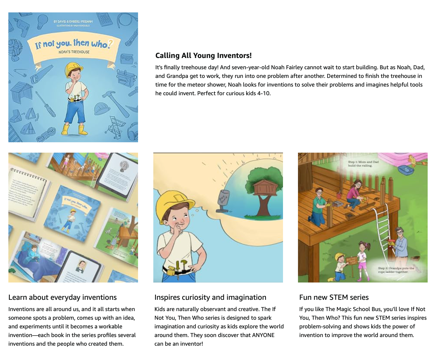 "In If Not You, Then Who, a new multi-book STEM series targeted at ages 4 to 8, authors David and Emberli Pridham do a most convincing job teaching children about the inventions and patents in everyday life...Fascinating facts and fun learning are what these books are all about. When the authors ask what inventions Brooke could devise to make her daily tasks easier, great illustrations clearly make the point!"