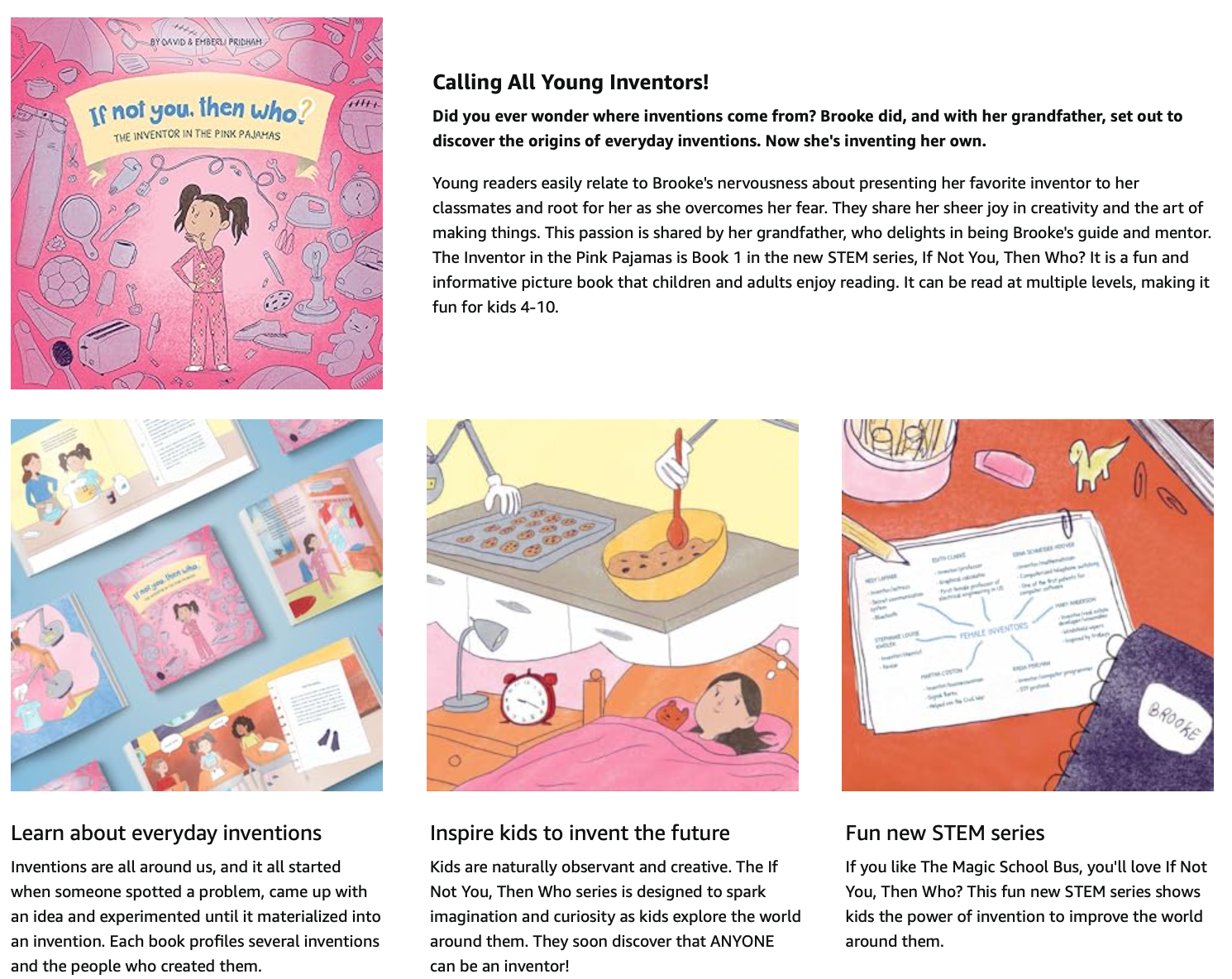 "In If Not You, Then Who, a new multi-book STEM series targeted at ages 4 to 8, authors David and Emberli Pridham do a most convincing job teaching children about the inventions and patents in everyday life...Fascinating facts and fun learning are what these books are all about. When the authors ask what inventions Brooke could devise to make her daily tasks easier, great illustrations clearly make the point!"