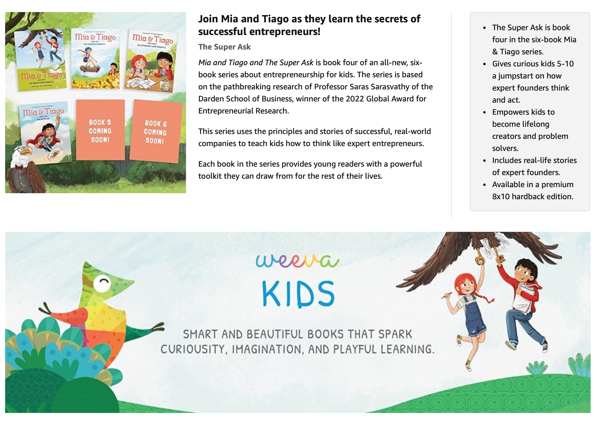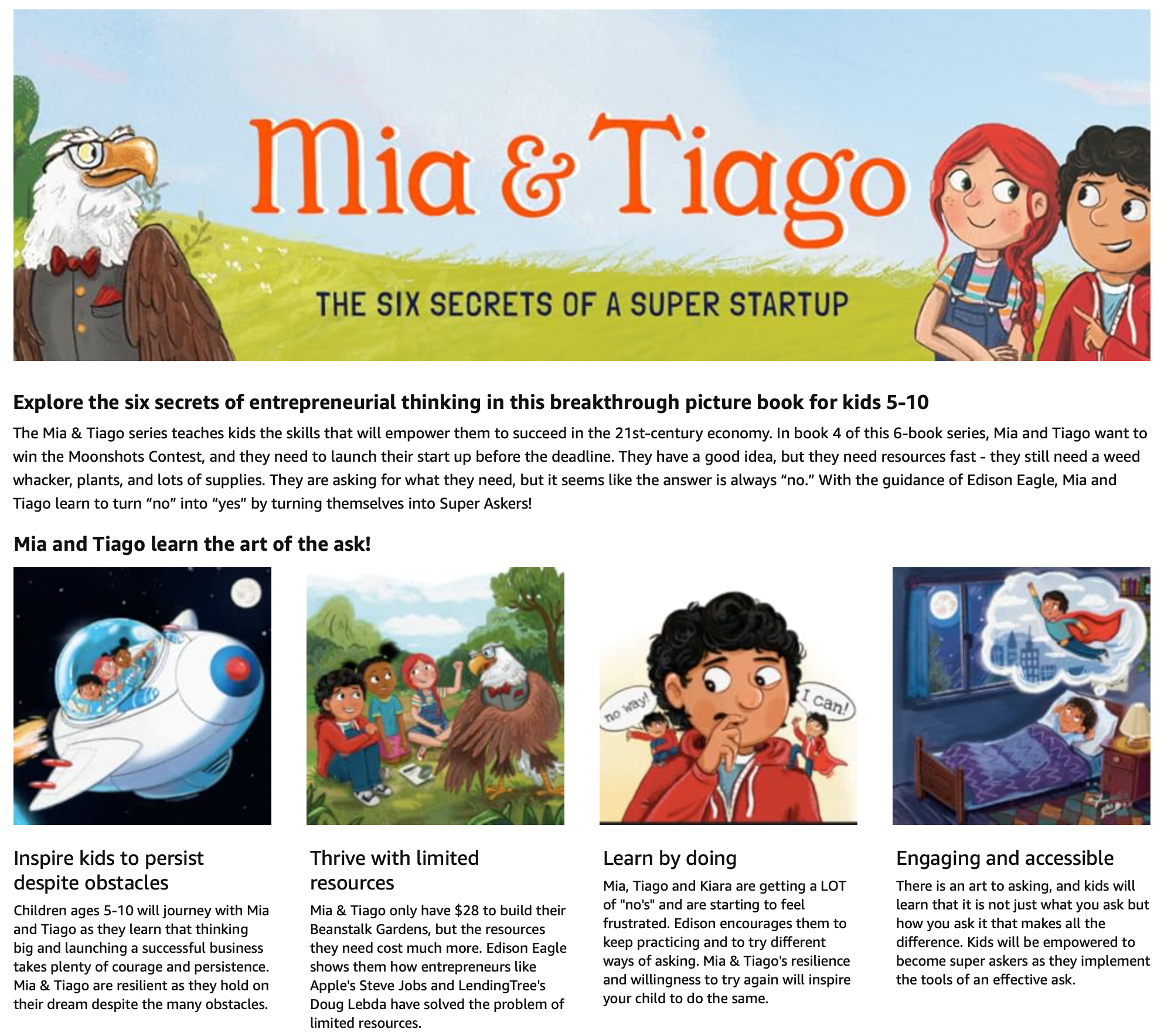 "As an entrepreneur, when I make hiring decisions, I look for people who aren't just smart. I want people who have an entrepreneurial mindset, people who are creative thinkers and problem solvers. The Mia & Tiago picture-book series teaches kids those skills in a fun and engaging way." -Doug Lebda, Founder and CEO of LendingTree