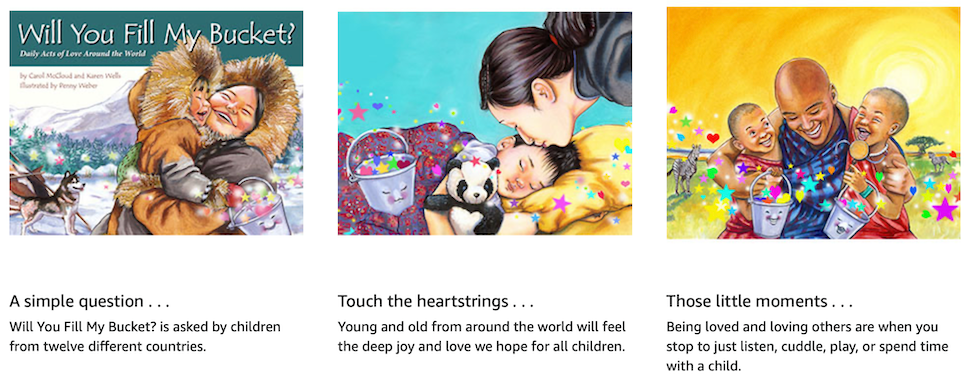 "... the book takes us back to the very personal world of the child, powerfully reminding us that the emotional needs of children everywhere are the same. The beautiful and joyful illustrations by Penny Weber gently reinforce the message that we humans are diverse in many ways but our buckets—which represent our need for unconditional love and emotional security—are all the same... the act of filling others' buckets helps to fill our own buckets, is... explored in other books in the Bucket Filling series." —Beverley Paine, blogger on The Educating Parent