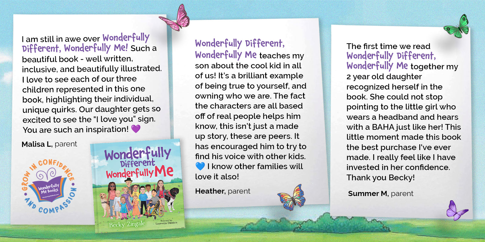 For years, Duane has been encouraging Becky to write children’s books. After the Zingale family was featured on the Born Different show, Becky was inspired to help children (and adults) grow in confidence and compassion, by seeing themselves and their friends represented in Wonderfully Me Books.